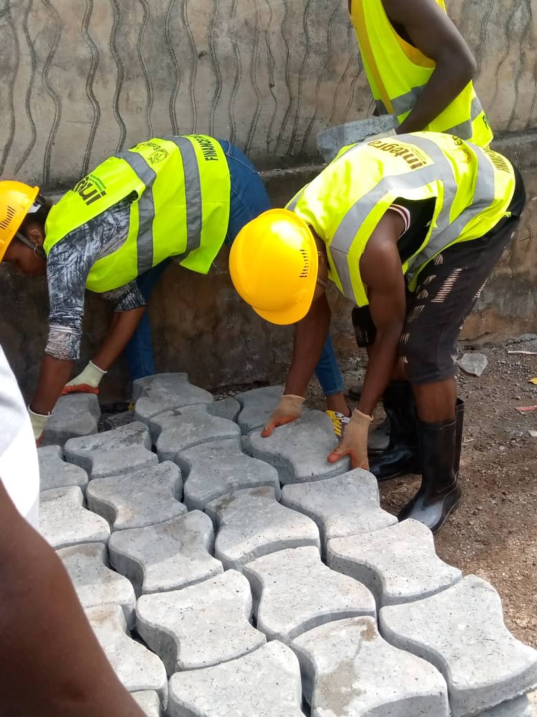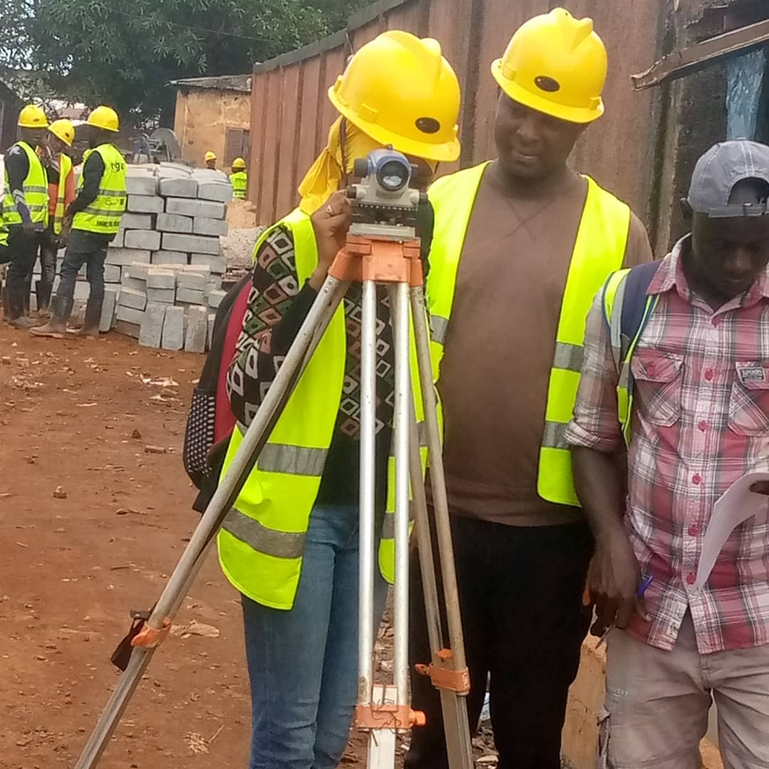 Des apprenants Chantiers Ecoles font de levés topographiques